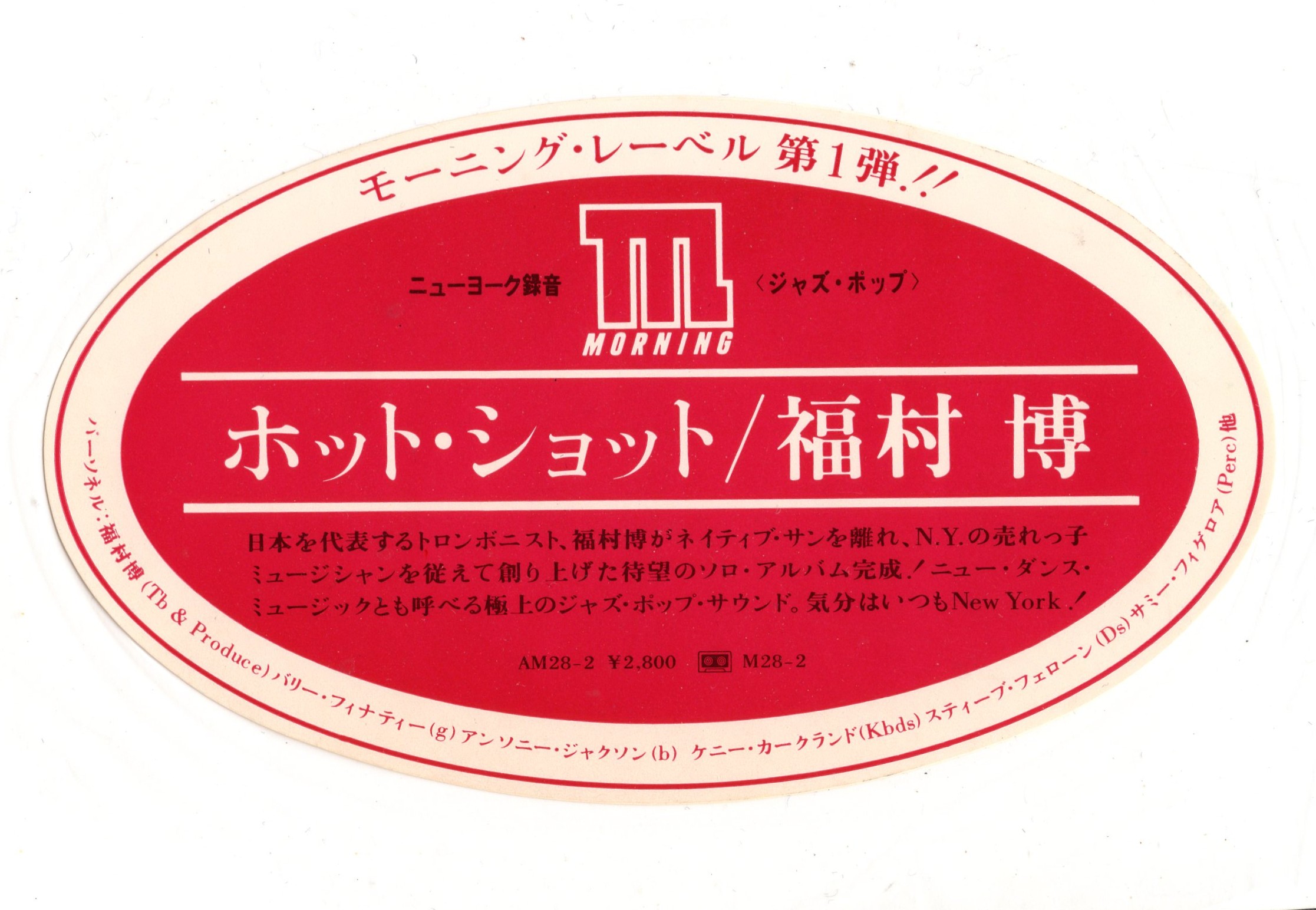 このバリー・フィナティも参加し、ニューヨークで売れっ子ミュージシャンとともに制作されたのが、福村 博のこの「ホット・ショット」である。これは、モーニング・レーベルの第2作となる。